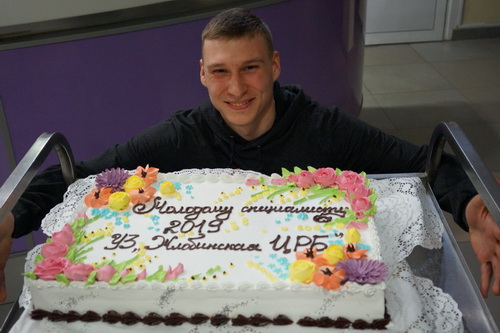 Кульминационным моментом мероприятия стал восьмикилограммовый торт в виде книги с надписью «Молодому специалисту УЗ «Жлобинская ЦРБ»-2019» .